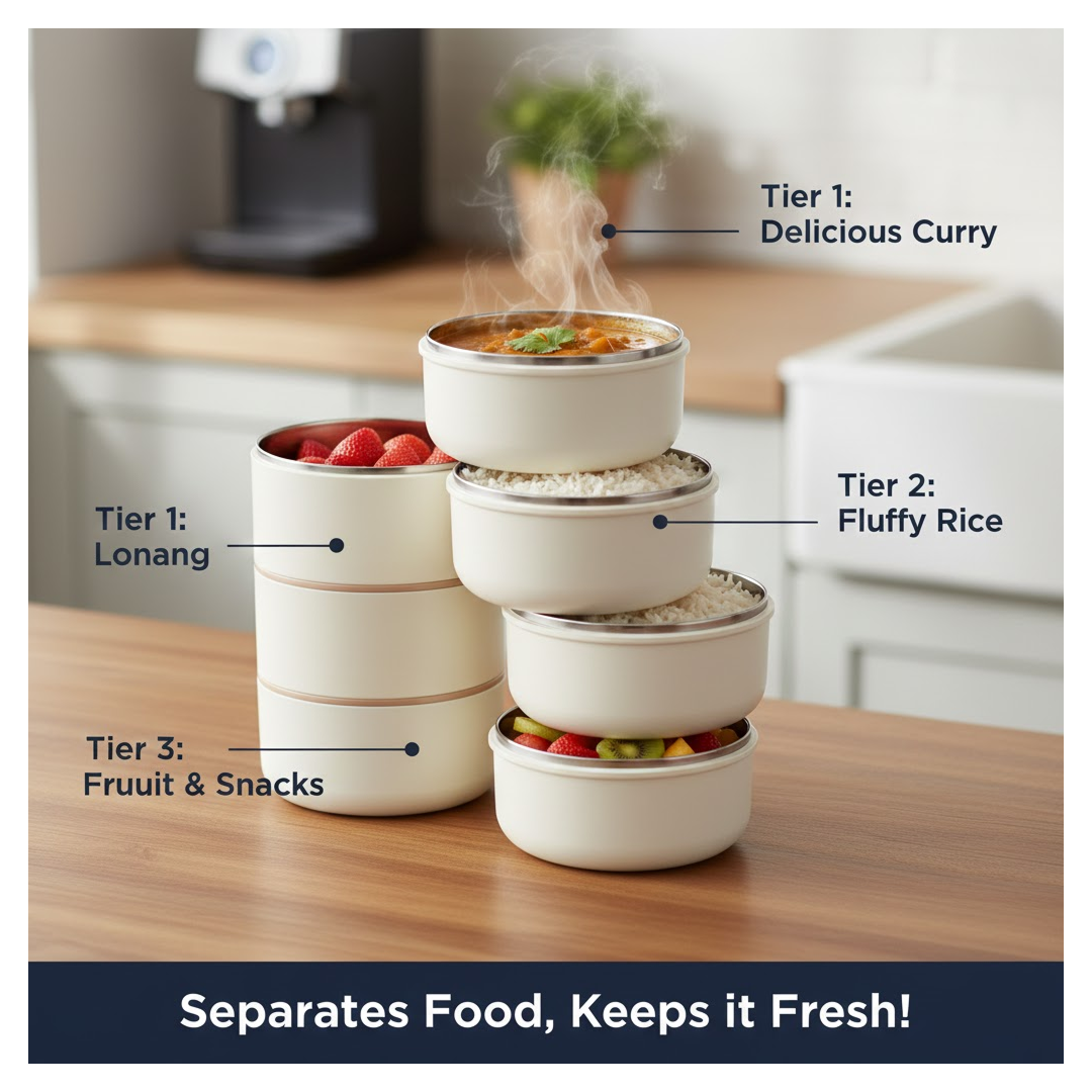 Ganesh Smart Stack 3 Layer Portable Lunch Box for Office, School, Picnic (3 Layer)